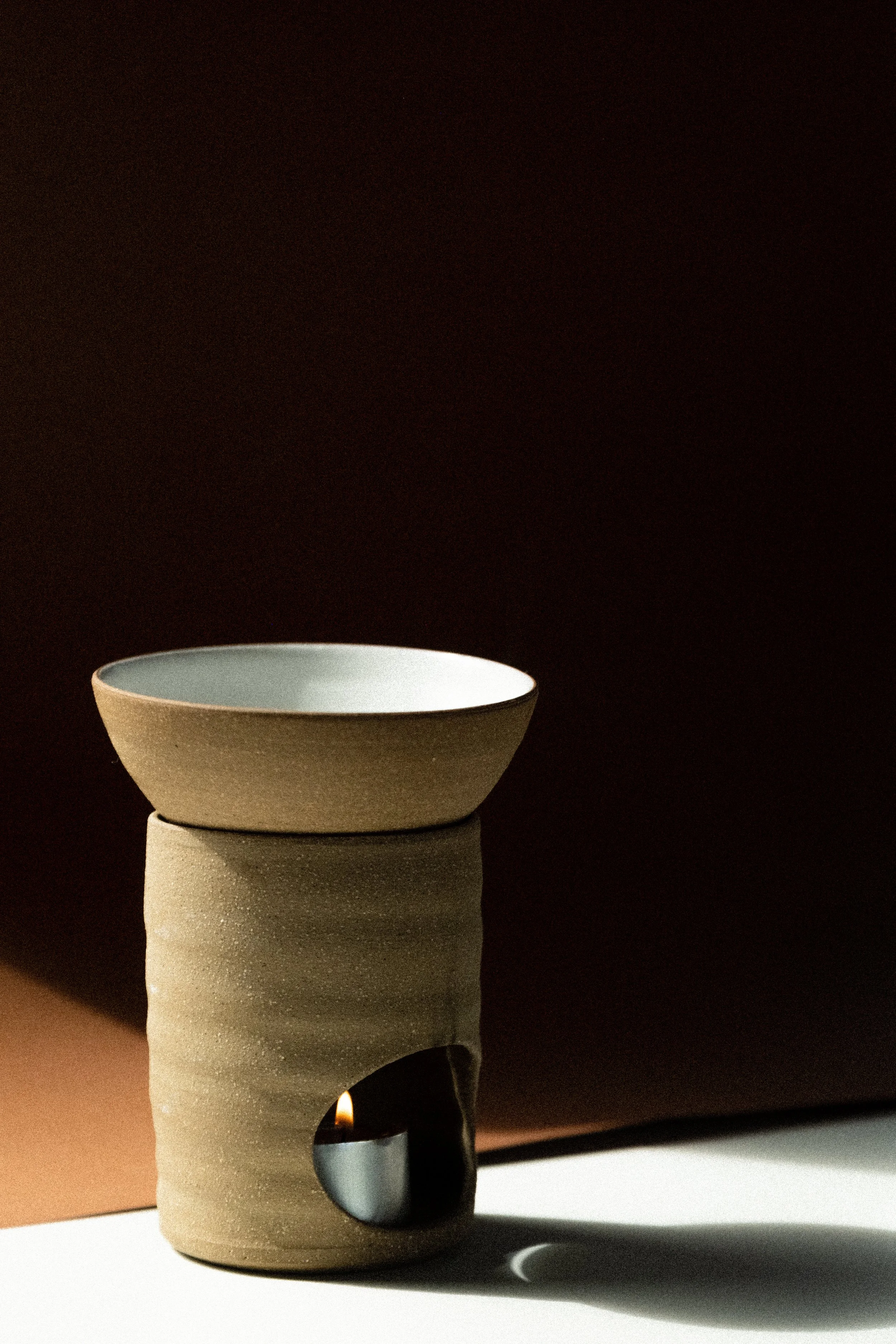 To use, fill the ceramic bowl with water, add 3-5 drops of our interior oils and light a tealight candle beneath. Allow the scent to unfurl slowly; simple, grounding, and designed for daily use.